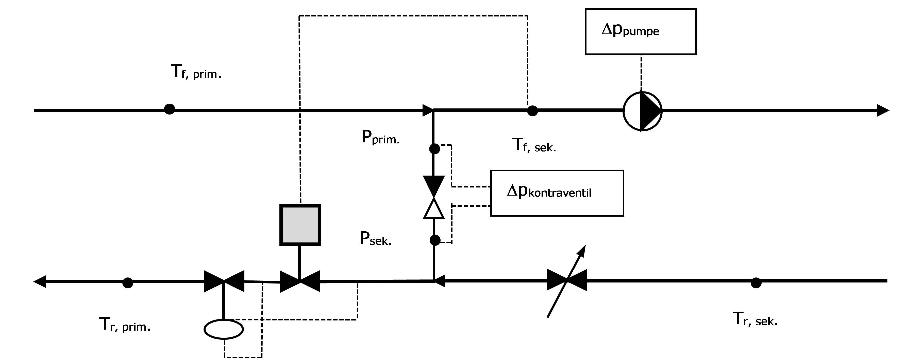 Den primære opgave for kontraventilen i blandekredsen er, at sikre den rigtigeflowretning. Det betyder, at returvandet fra varmeanlægget skal kunne løbe til fremløbsledningen og blive opblandet med fremløbsvandet. Derimod må fjernvarmevandet ikke kunne løbe direkte til returledningen. Vurderingen af om kontraventilen i blandekredsen fungerer/er dimensioneretkorrekt er baseret på målinger af følgende parametre: