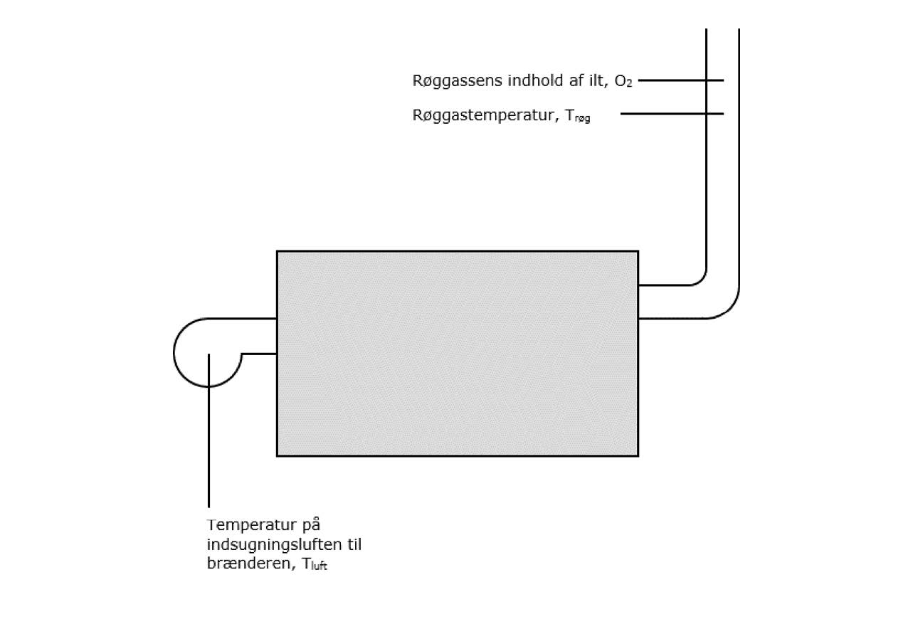 Ved eftervisning af kedlens virkningsgrad indgår følgende målepunkter: